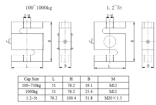 100,200,250,300,500,750,1000kg/1.5,2,3,5t